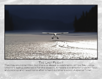 the last flight! This may sound terrible, but there is always a celebration at Yes Bay Lodge when the last guests leave for the season. It means it is time for crew to relax and pack up and head home after a hard summers work! A special Time!