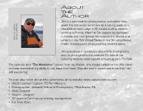 ABout the Author Jim is a semi-retired photographer and author who spent the last seven summers as a fishing guide at a beautiful remote Lodge in SE Alaska and his winters working in Florida. After his 5th season he liquidated in Florida and now spends his summers in Alaska and winters in the SW United States in his 5th wheel travel trailer, traveling and photographing what he see’s. Jim specializes in landscape and wildlife photography and his photographs are available for sale at the following website: www.captjim.smugmug.com/ForSale The calendar title “The Wanderer” comes from my Mother, she always called me the Wanderer and was amazed at my ability to just leave and travel. May she rest in peace and know that I am still wandering! You can also follow Jim and his adventures at his website: www.captainjimlucas.com • USCG Licensed Captain - 50 Ton Masters • Photographer - Antonelli School of Photography - Philadelphia, PA • Web Designer • Graphic Designer • 30 years in Commercial printing management • Full Time RVer.